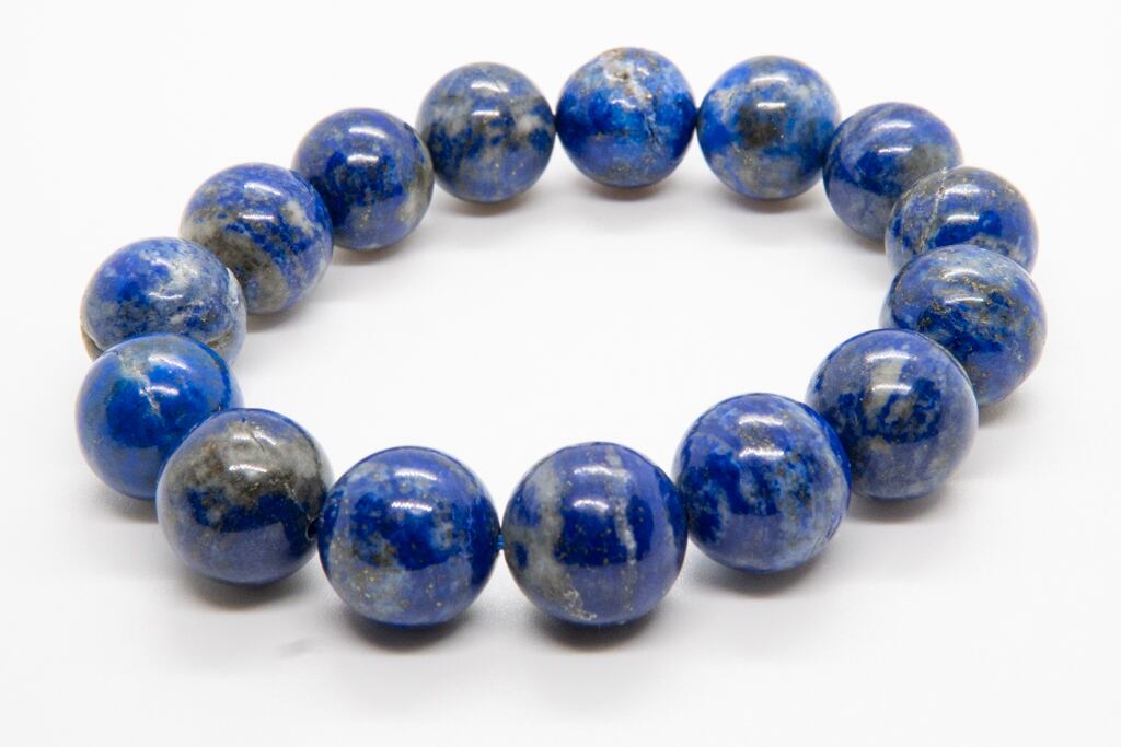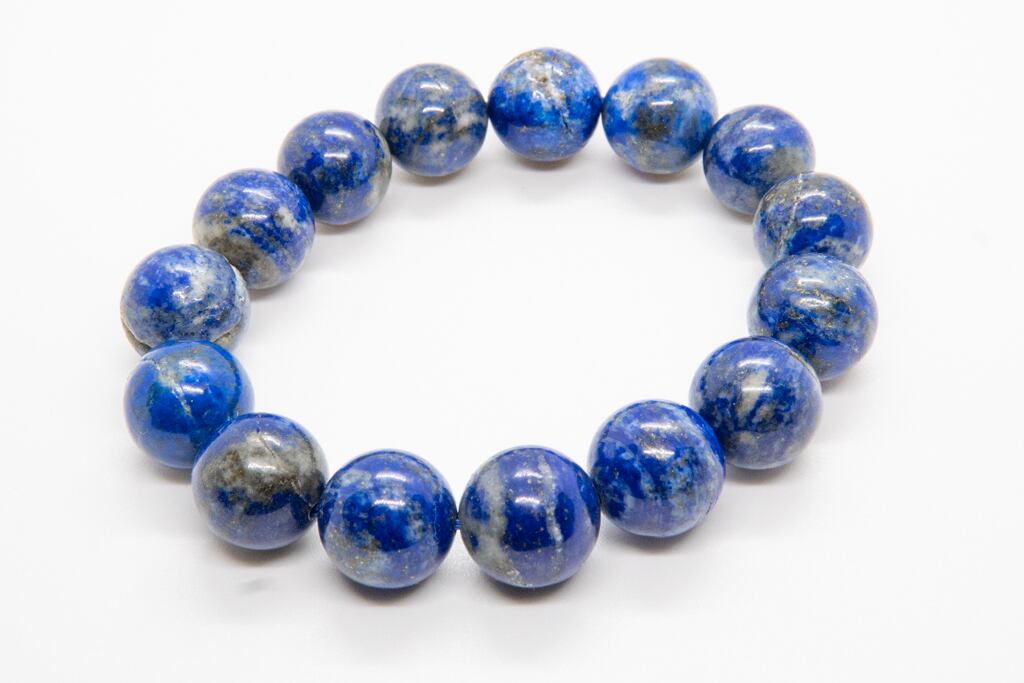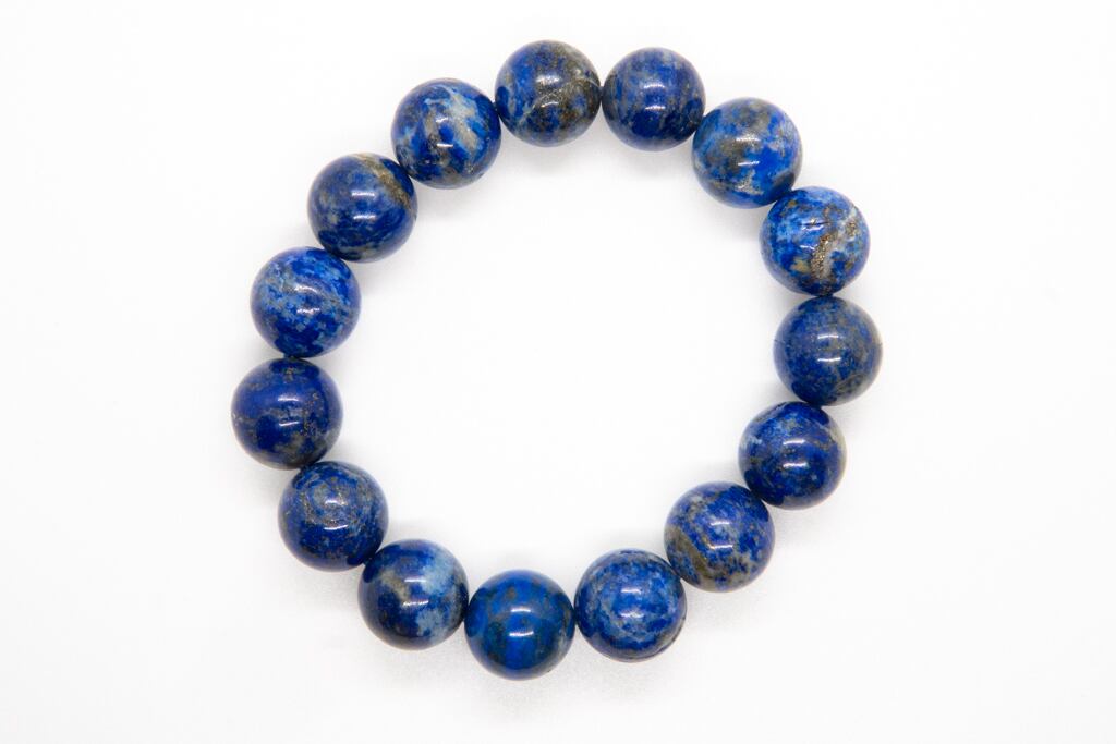 深みのあるブルーが印象的な、14mm珠のラピスラズリブレスレット。
