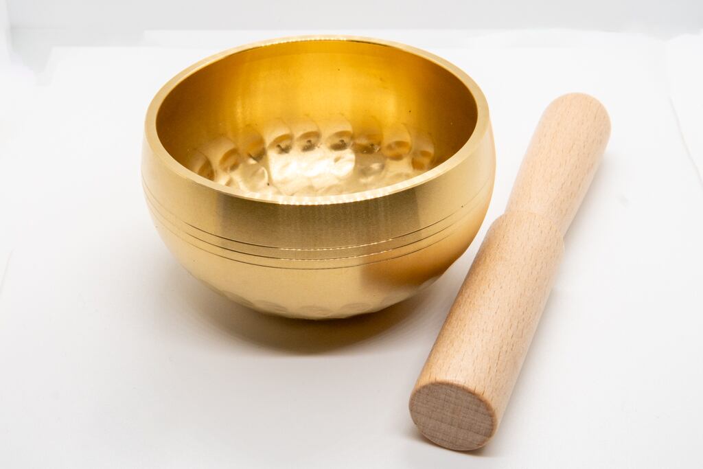 手のひらに収まる、小ぶりなサイズのシンギングボウル。