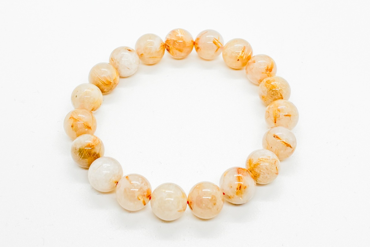 手元を彩る美しい、ルチルクォーツの10mmブレスレット。